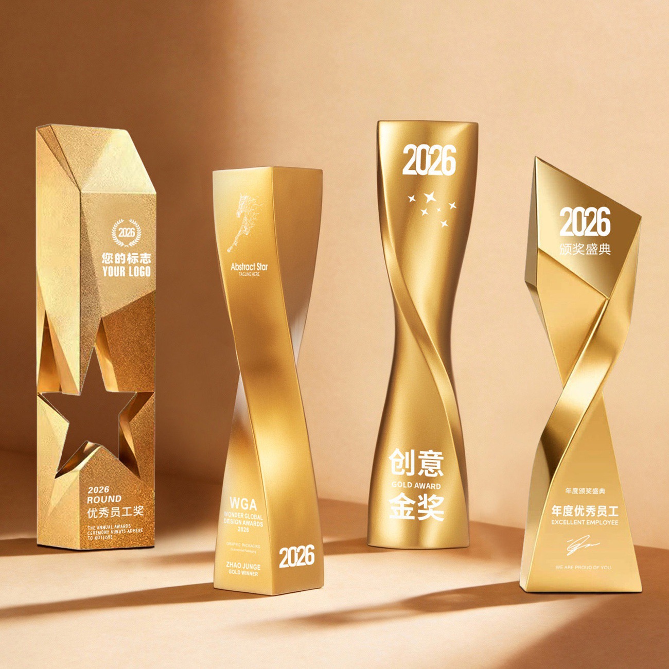 2026新款树脂奖杯创意不规则金银铜奖杯企业优秀员工年会爆款