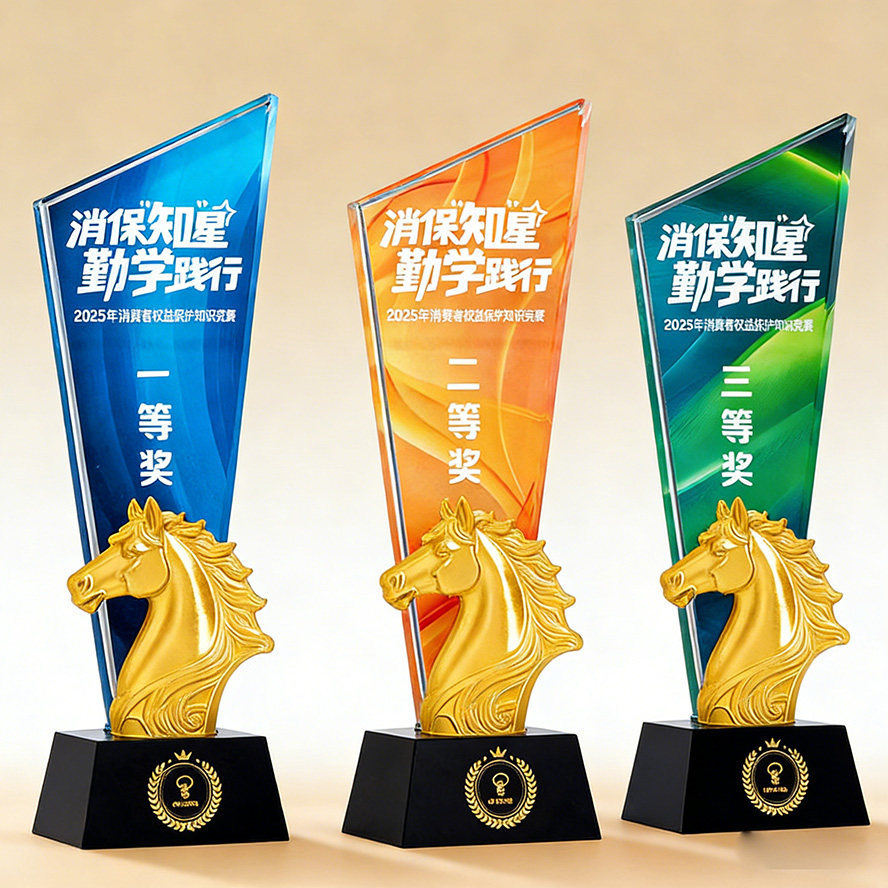 马摆件奖杯纪念品礼物水晶马术比赛冠军年会颁奖销售本命年