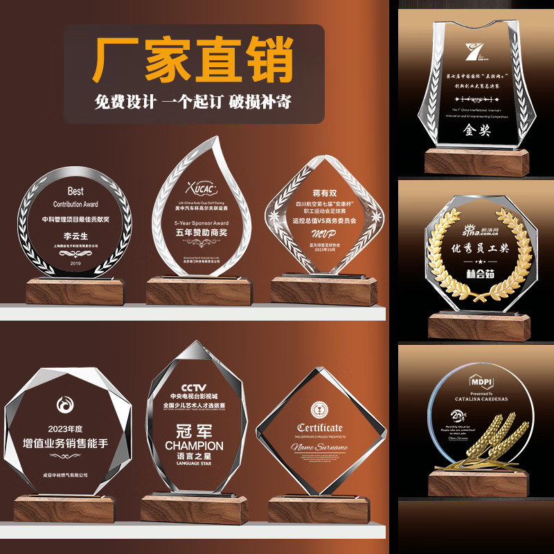 实木水晶奖杯刻字奖牌授权牌制作优秀员工嘉奖颁奖纪念品定制奖杯