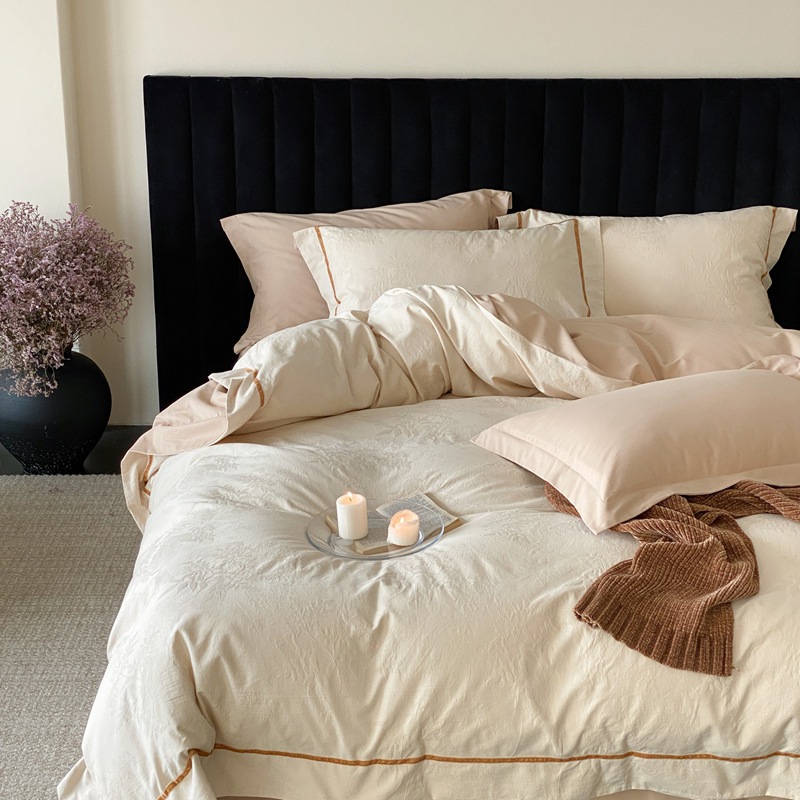 水星家纺全棉磨毛四件套100s轻奢春秋冬加厚保暖提花被套纯棉床单
