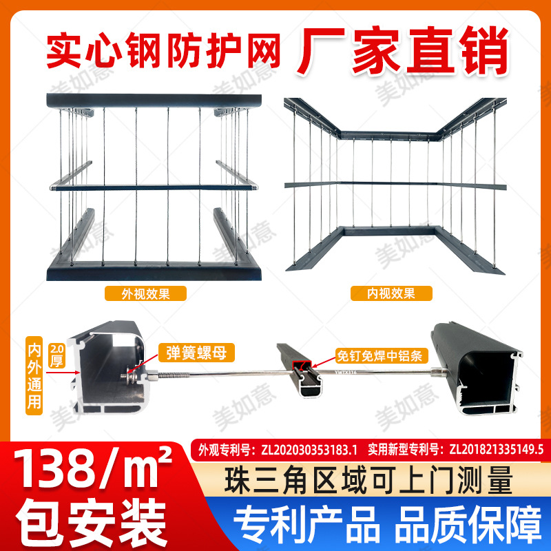 阳台专用高强抗拉螺母款实心钢隐形防护网全新铝合金轨道厂家直销
