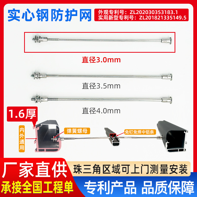 全国供应隐形防盗网专用高强抗拉不锈钢螺母款实心钢隐形防护网
