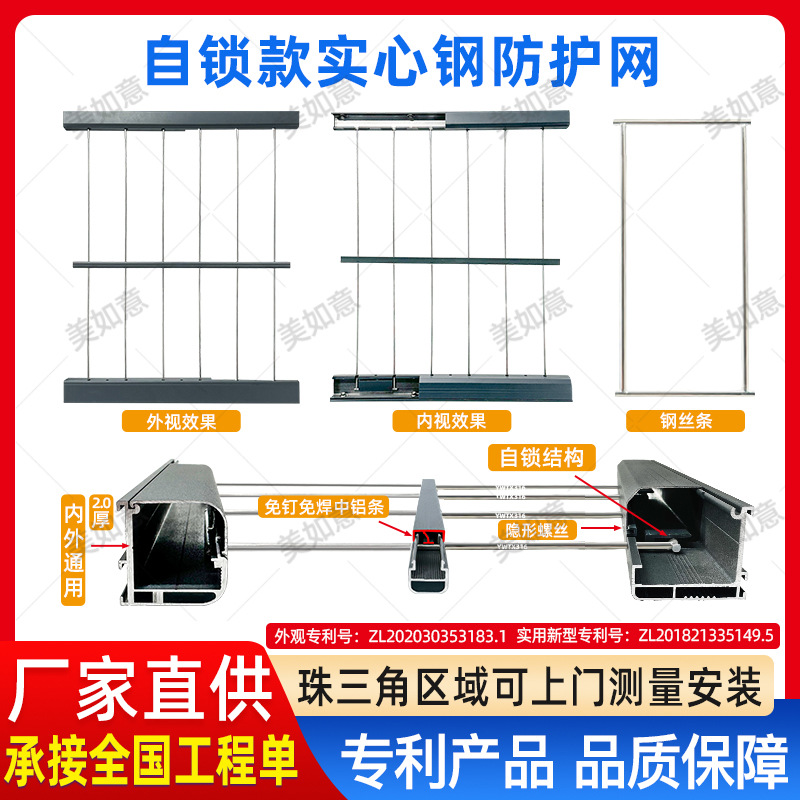 佛山厂家直销阳台专用不锈钢自锁实心钢隐形防护网全新铝合金轨道