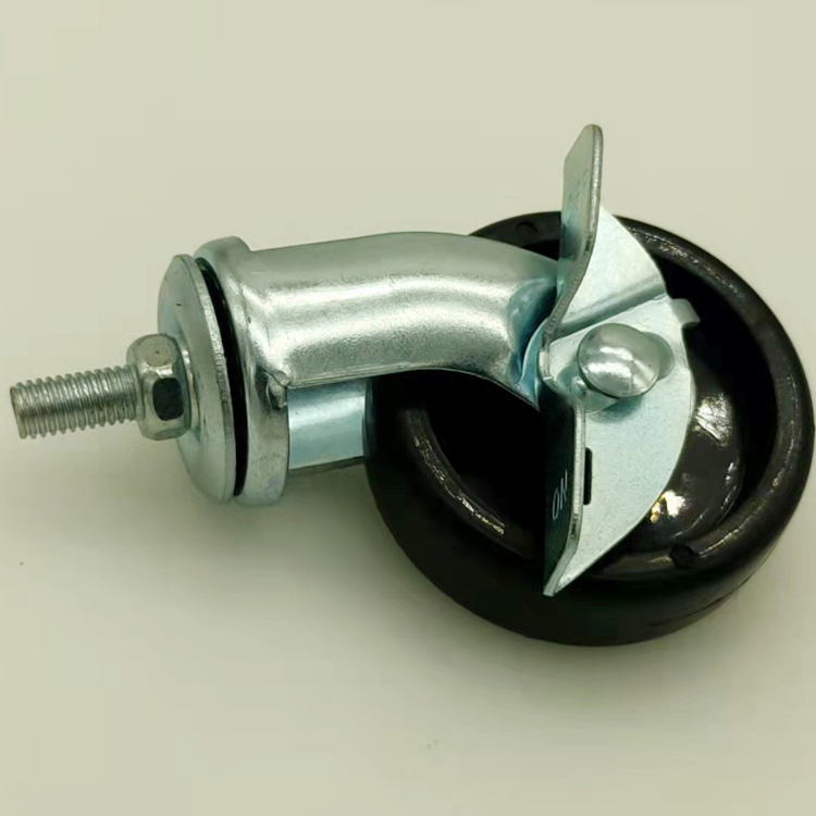 现货牛角轮月牙万向轮2.5寸带刹车置物架脚轮 带丝杆静音脚轮