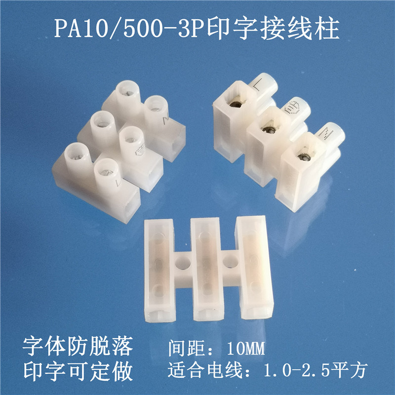 三位成膜接线柱PA10-3P接线端子500三位接线排10H端子可印字VDE