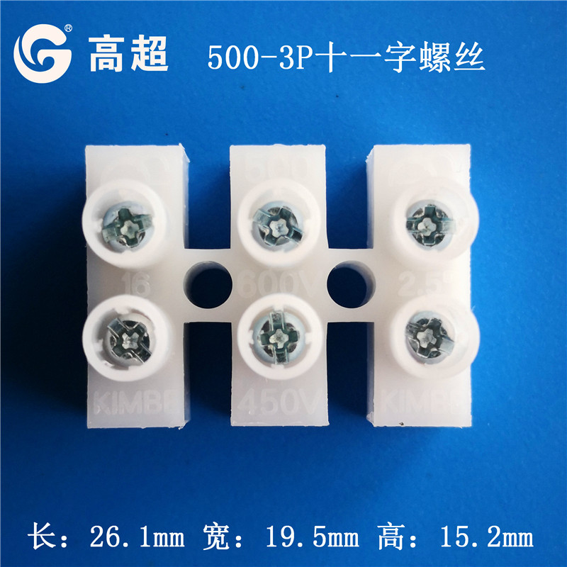 三位成膜接线柱端子台24A间距10mm端子阻燃环保三位端子500型号