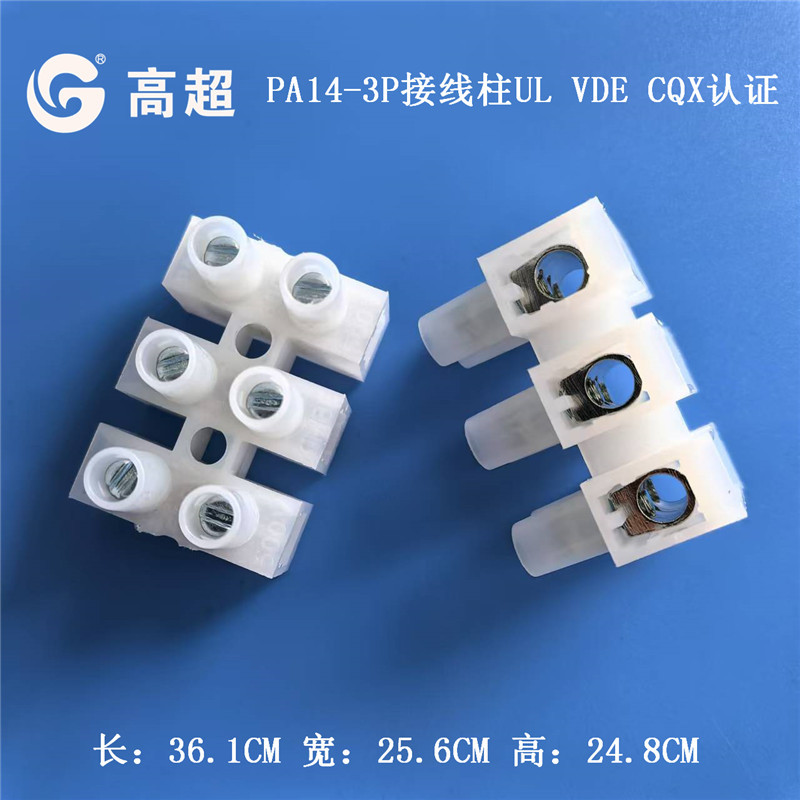 PA14-3P接线端子10平方接线柱UL认证VDE端子台阻燃三位端子