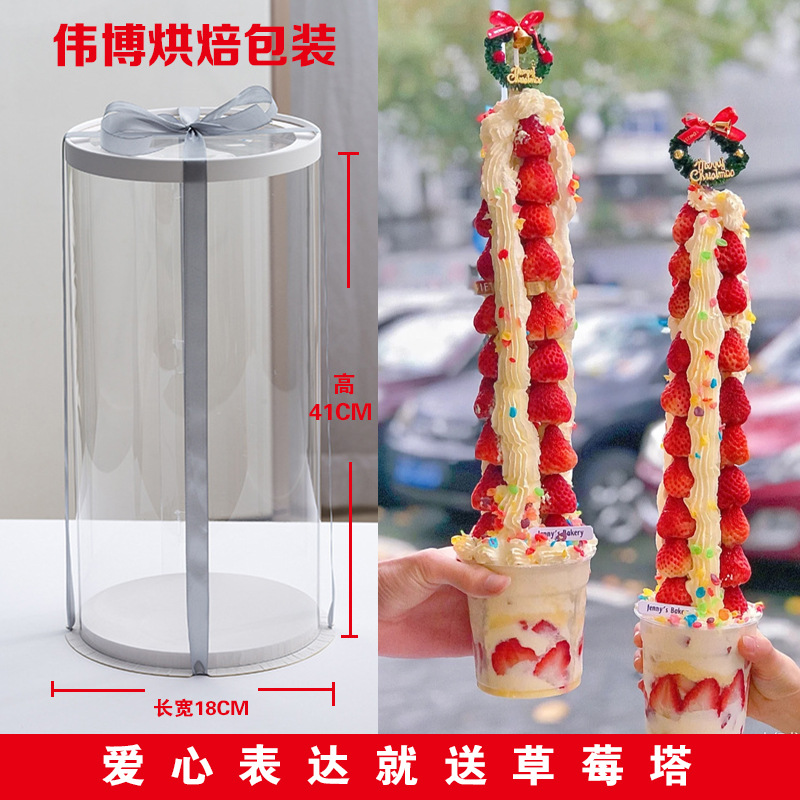 网红圆形方形圣诞巨型草莓塔包装盒透明生日蛋糕盒子4寸44高40高