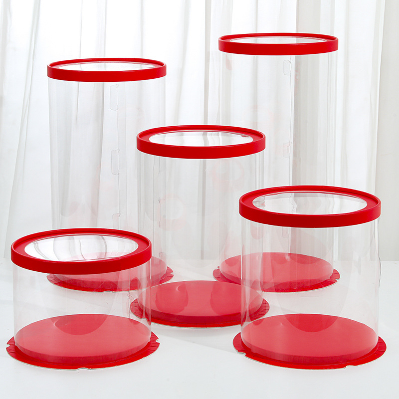 厂家红色透明蛋糕盒4寸6寸8寸加高烘焙蛋糕包装盒生日蛋糕盒批发