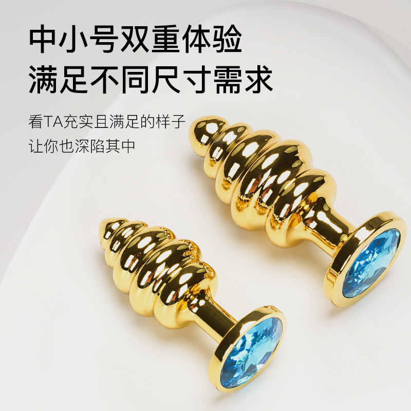 金属情趣肛塞拉珠螺纹后庭肛塞玩具自慰器成人性用品外长穿戴玩具