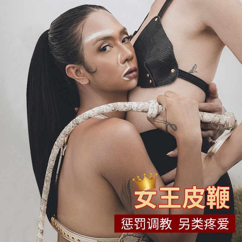 sm情趣用品另类性玩具 女王惩罚甩抽打调教刑道具蛇纹皮革长鞭子