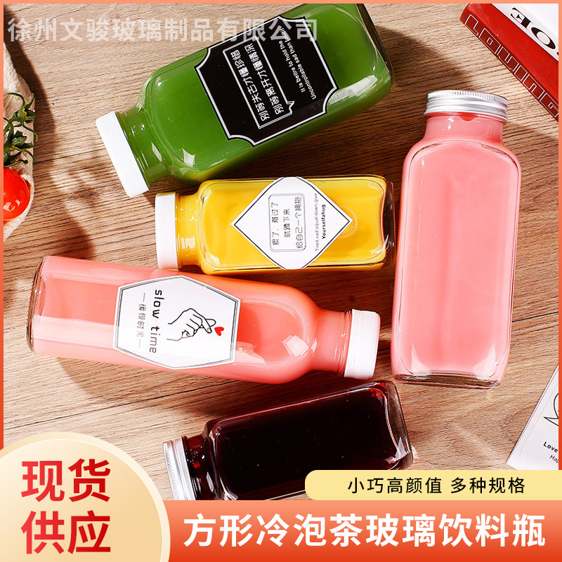 方形冷泡茶玻璃饮料瓶酵素玻璃瓶透明果酒玻璃瓶带盖泡茶玻璃瓶
