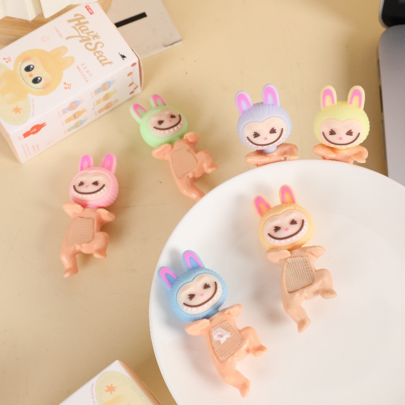 POPMART泡泡玛特 LABUBU拉布布坐坐派对搪胶植绒盲盒马卡龙