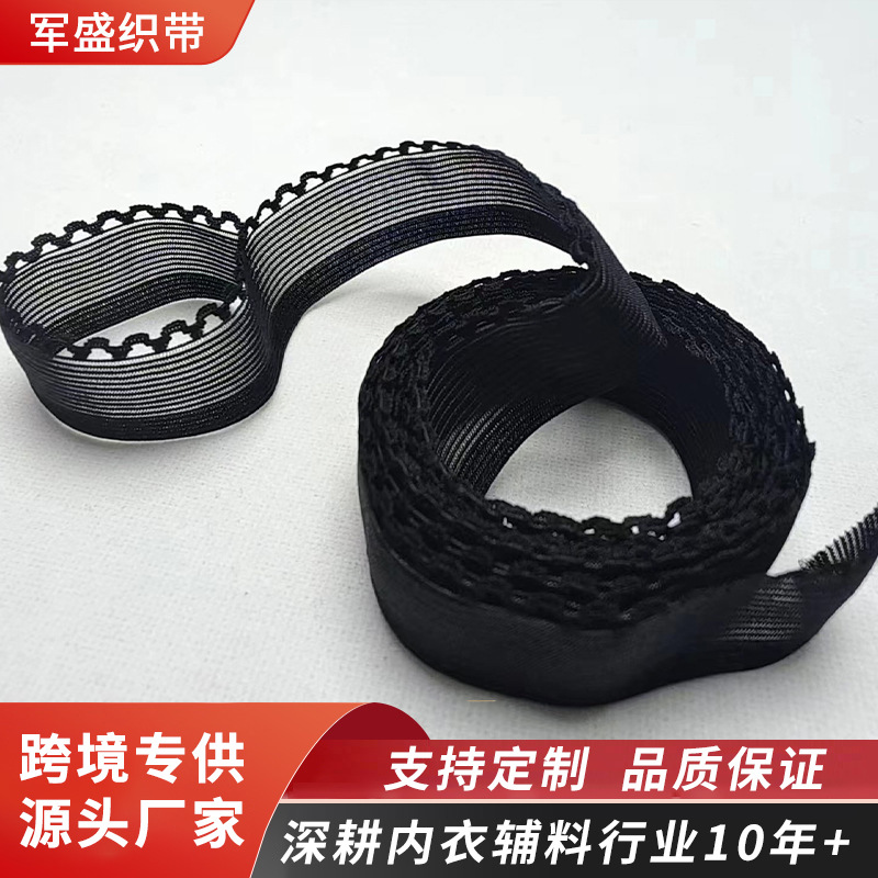 批发内衣服装辅料芽边黑色弹性蕾丝丝带松紧带织带条纹针织花边带