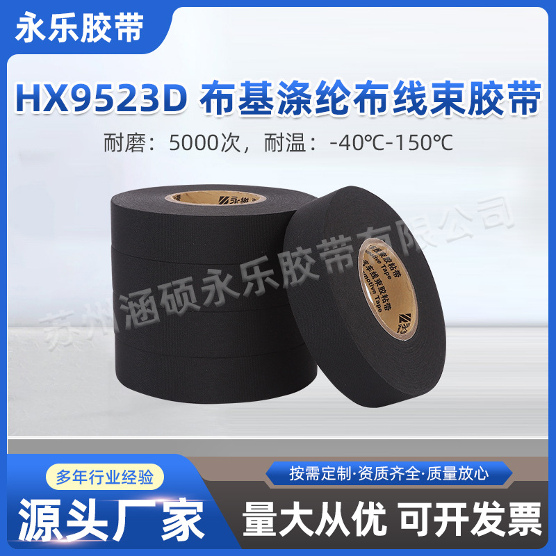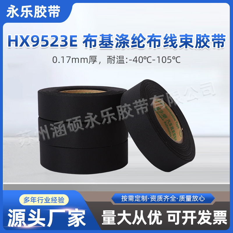 永乐布基涤纶布线束胶带厂家HX9523E耐磨高粘性线束胶带涤纶胶带