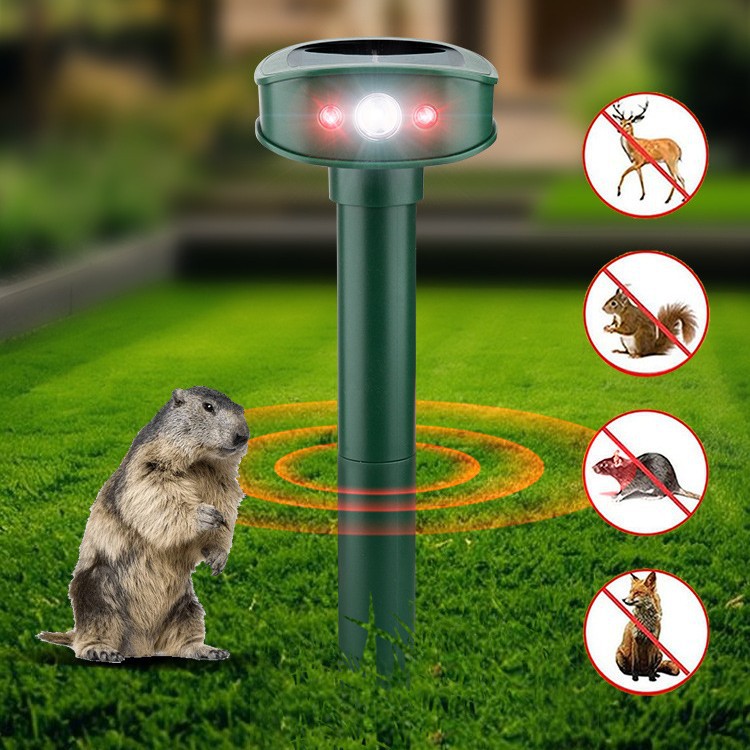 新款户外太阳能驱赶器农场超声波驱鼠器感应红白爆闪光动物警示灯