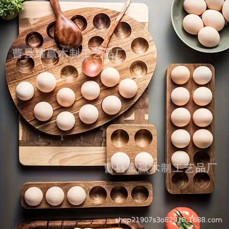 木制鸡蛋收纳盒托盘家用厨房储物架多隔层鸡蛋架厨房烹饪整理摆放