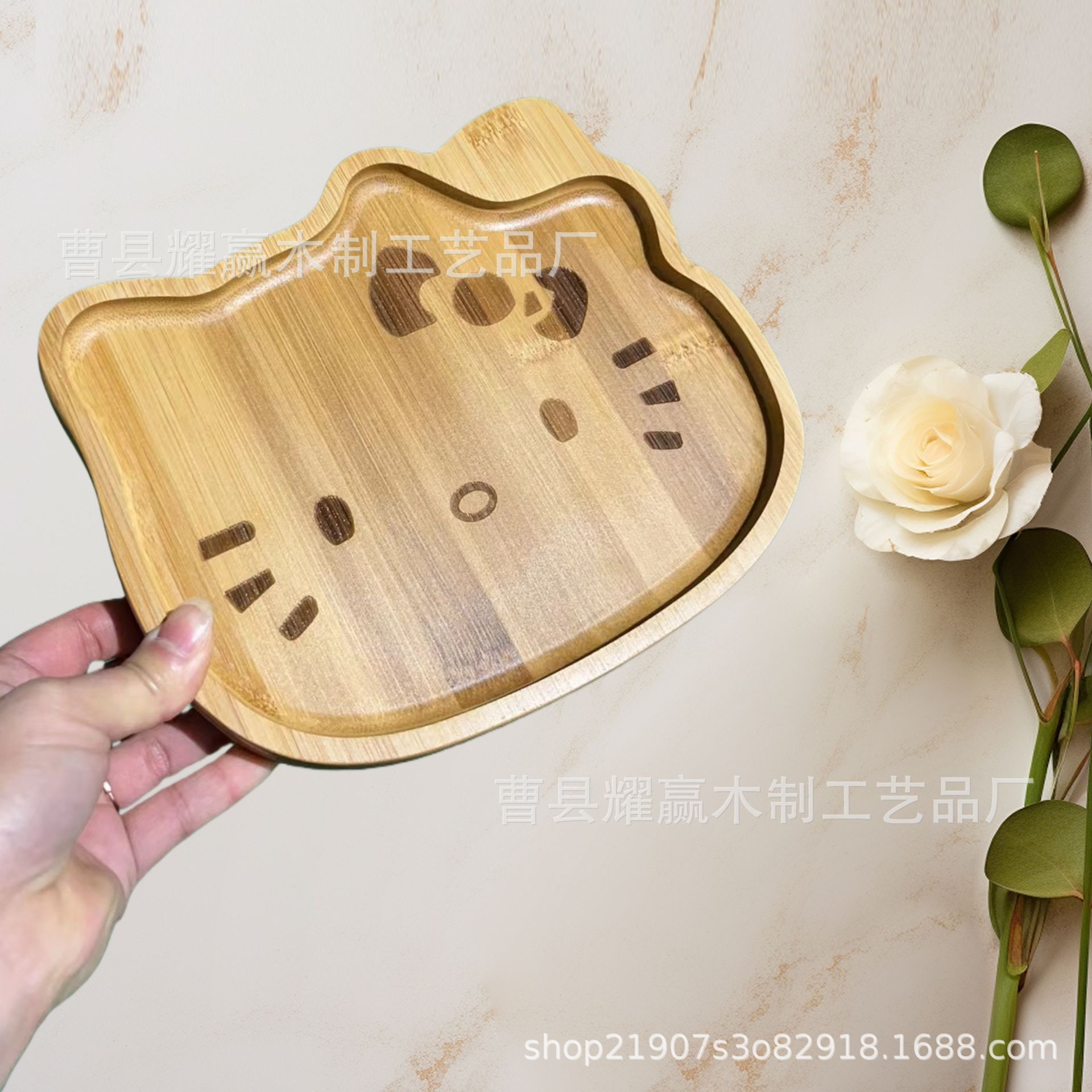 日式木质餐具竹制托盘卡通儿童餐盘家用可爱辅食甜品熟食板实木
