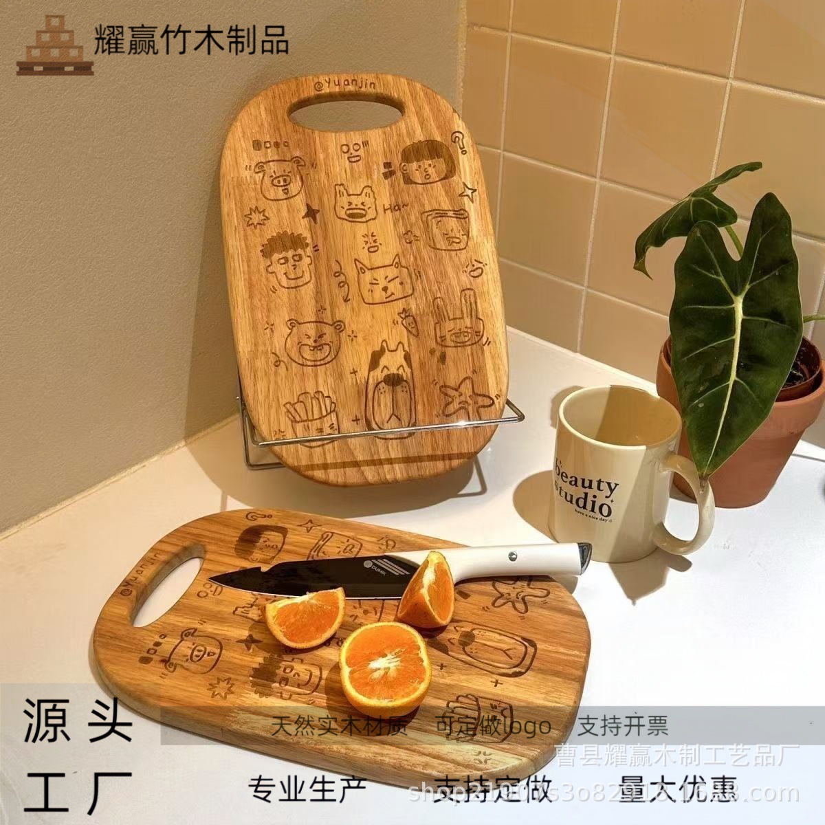 竹制砧板激光雕刻创意实木菜板家用厨房木质切菜食物摆放亚马逊