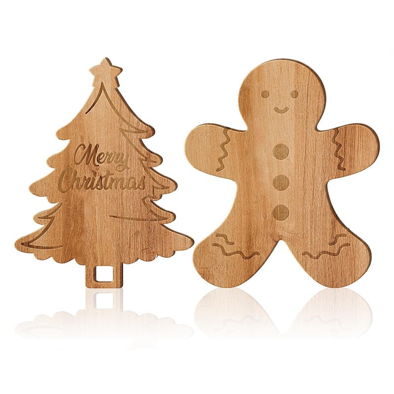 创意木制托盘圣诞节餐盘创意姜饼人圣诞树托盘实木儿童辅食板批发