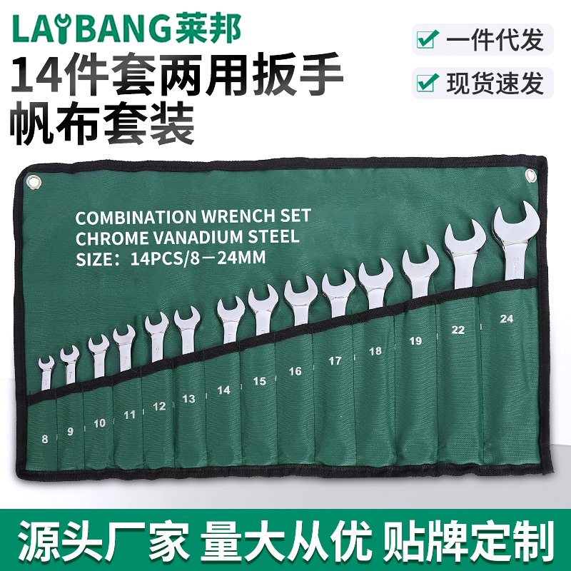 两用扳手14件套两用扳手帆布套装开口扳手梅花扳子五金工具套装