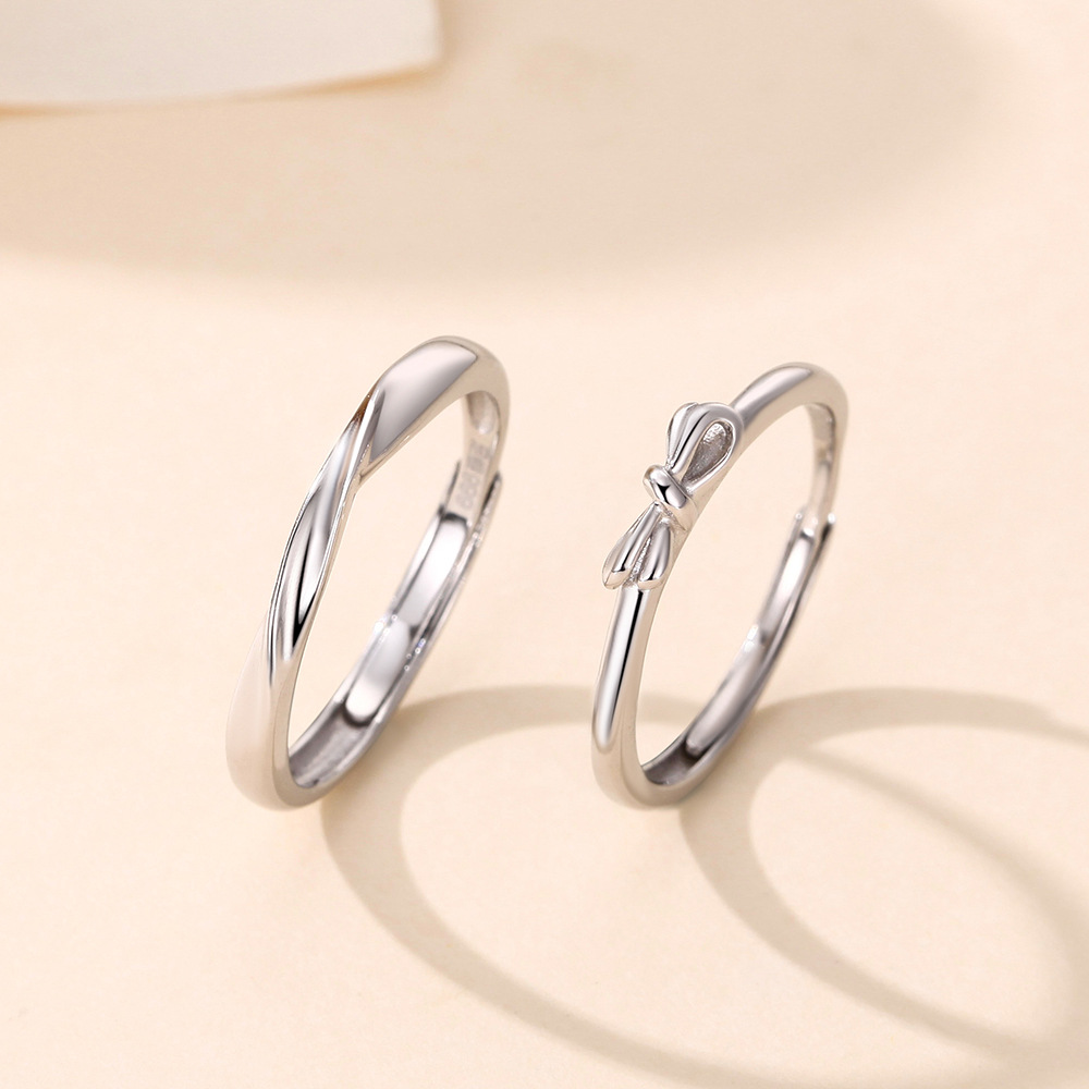 s999纯银蝴蝶结戒指女甜美小清新风时尚素圈个性高级感开口戒情侣
