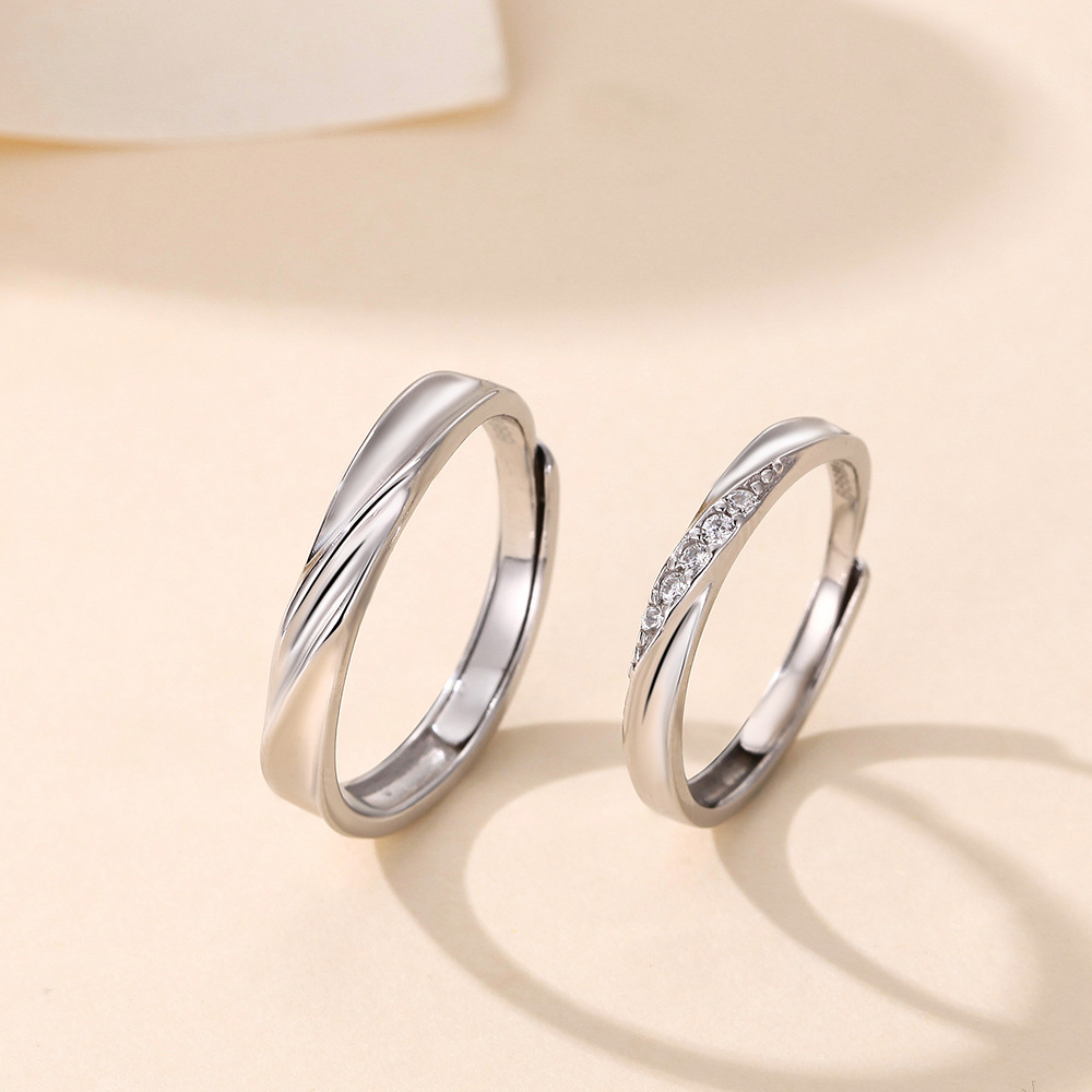 s999纯银莫比乌斯环情侣戒指男女一对戒韩版简约锆石开口指环礼物