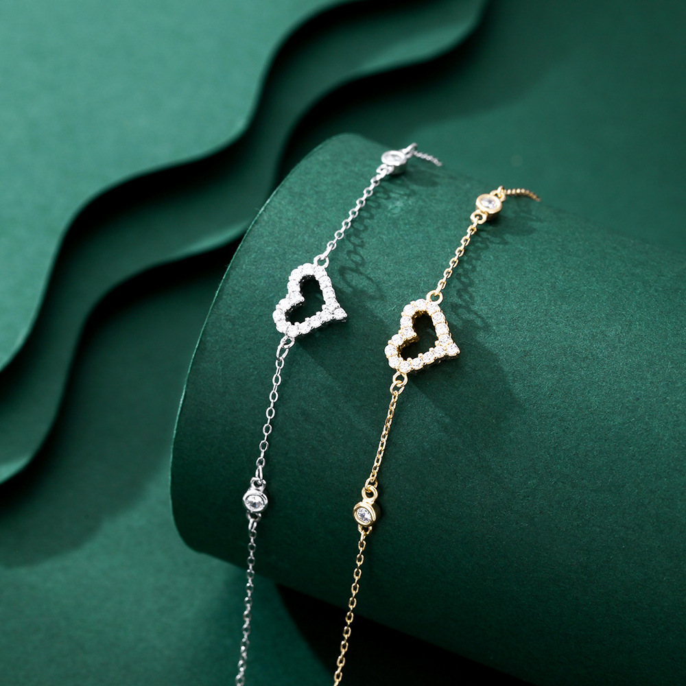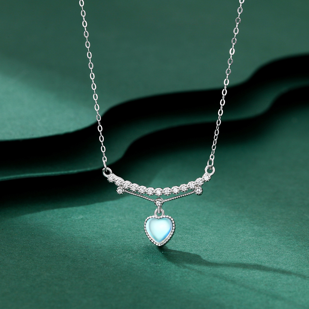 S999纯银轻奢爱心项链百搭锆石唯美高级感小众设计锁骨链生日礼物