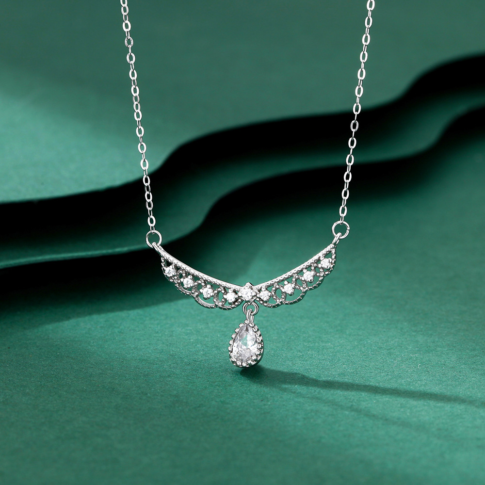 纯银S999项链托蕾丝水滴镂空翅膀项链甜美公主华丽精致颈链锁骨链