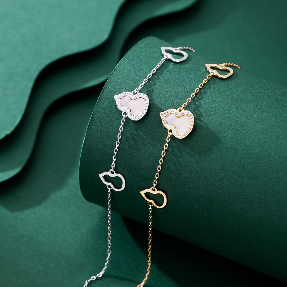 s999纯银女白贝母葫芦手链韩版简约气质时尚高级手饰送女友礼物