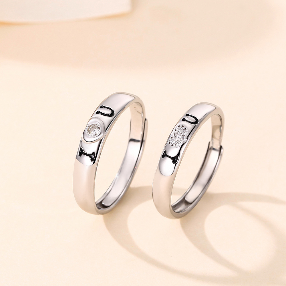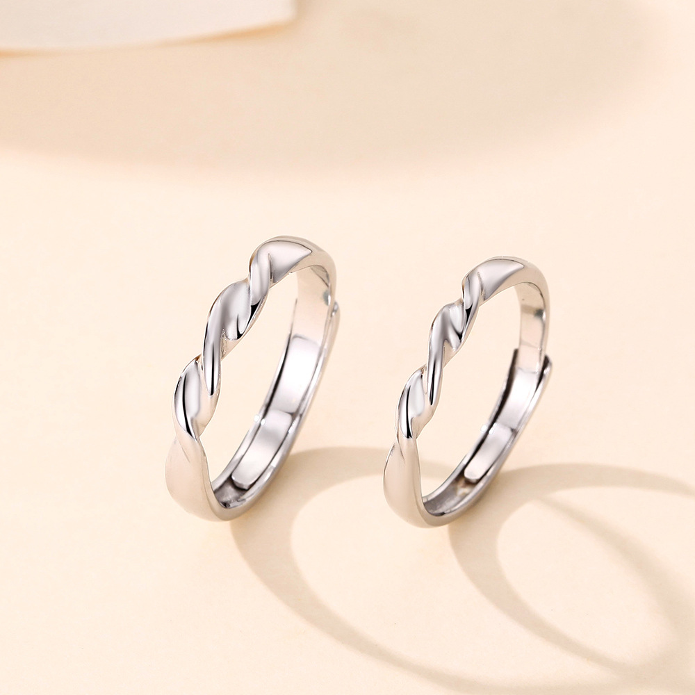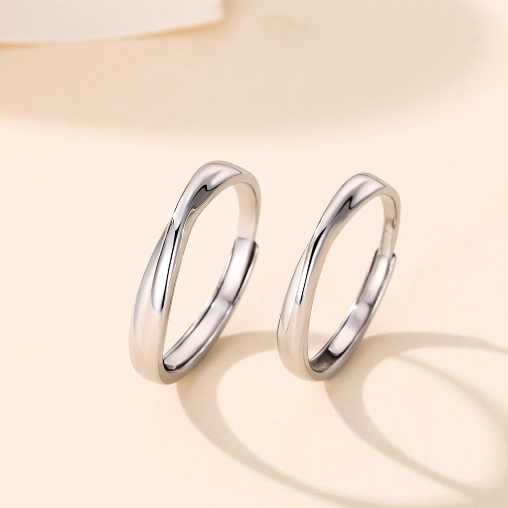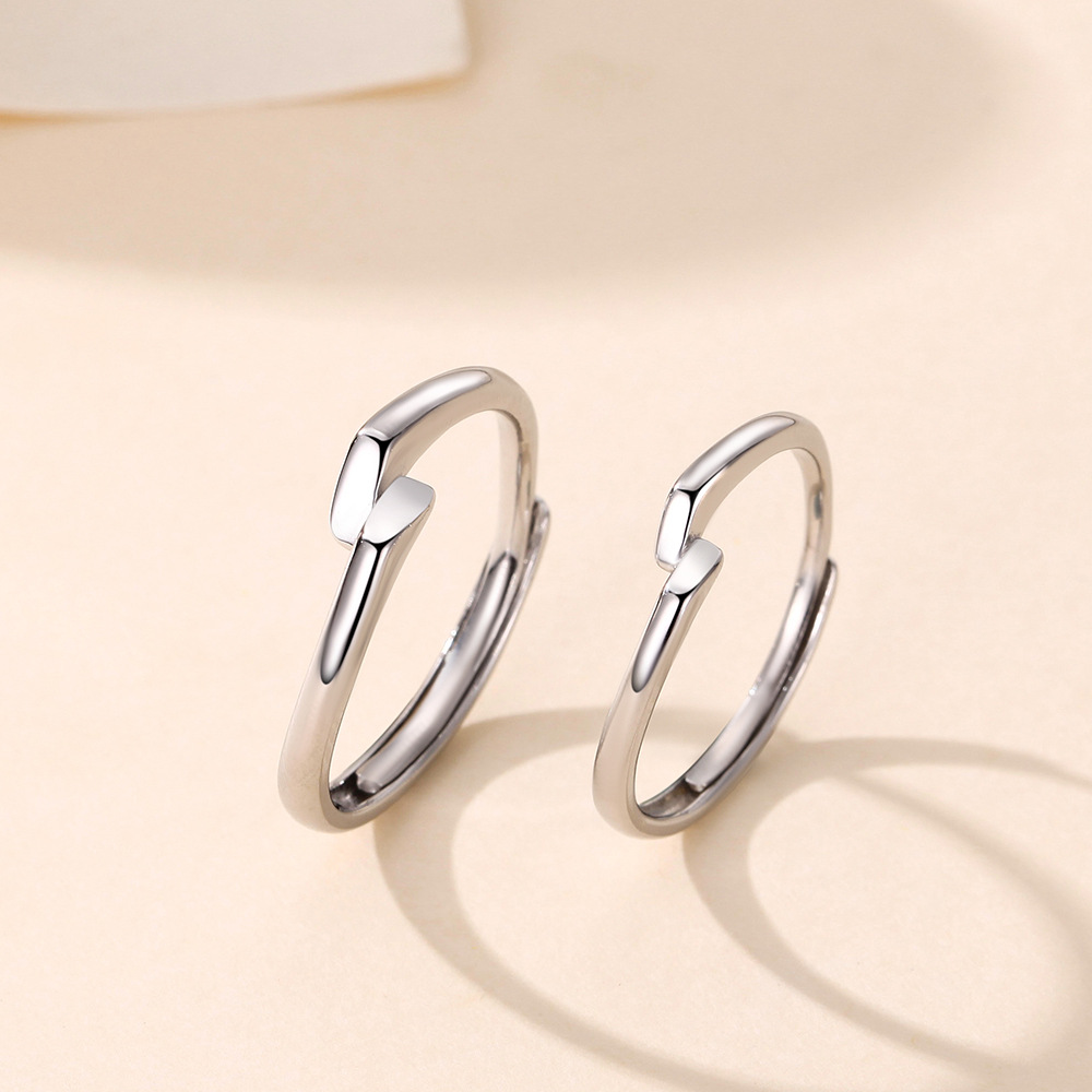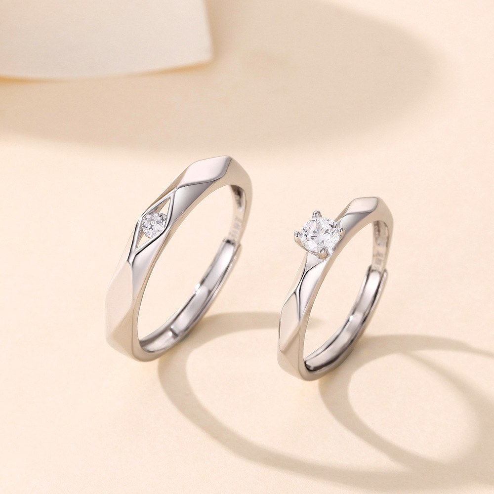 s999纯银情侣对戒简约开口情侣戒指结婚对戒时尚指环送男女友礼物
