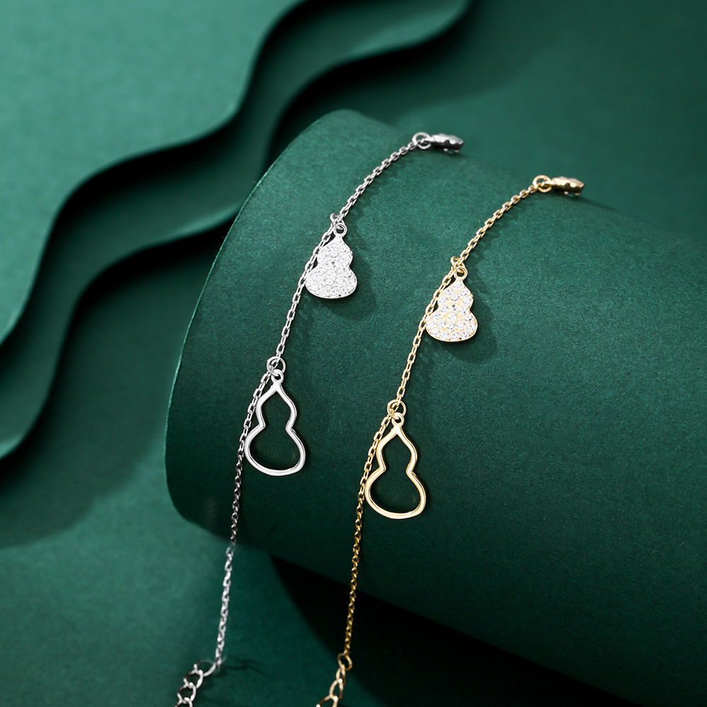s999纯银女双葫芦手链女轻奢小众气质精致微镶满钻国风流苏手饰