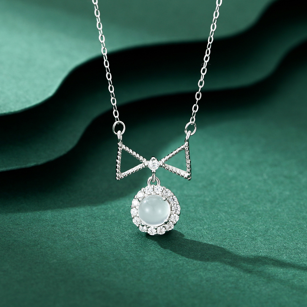 S999纯银美人泪白玉髓眼泪项链新款爆款潮流轻奢小众吊坠锁骨链