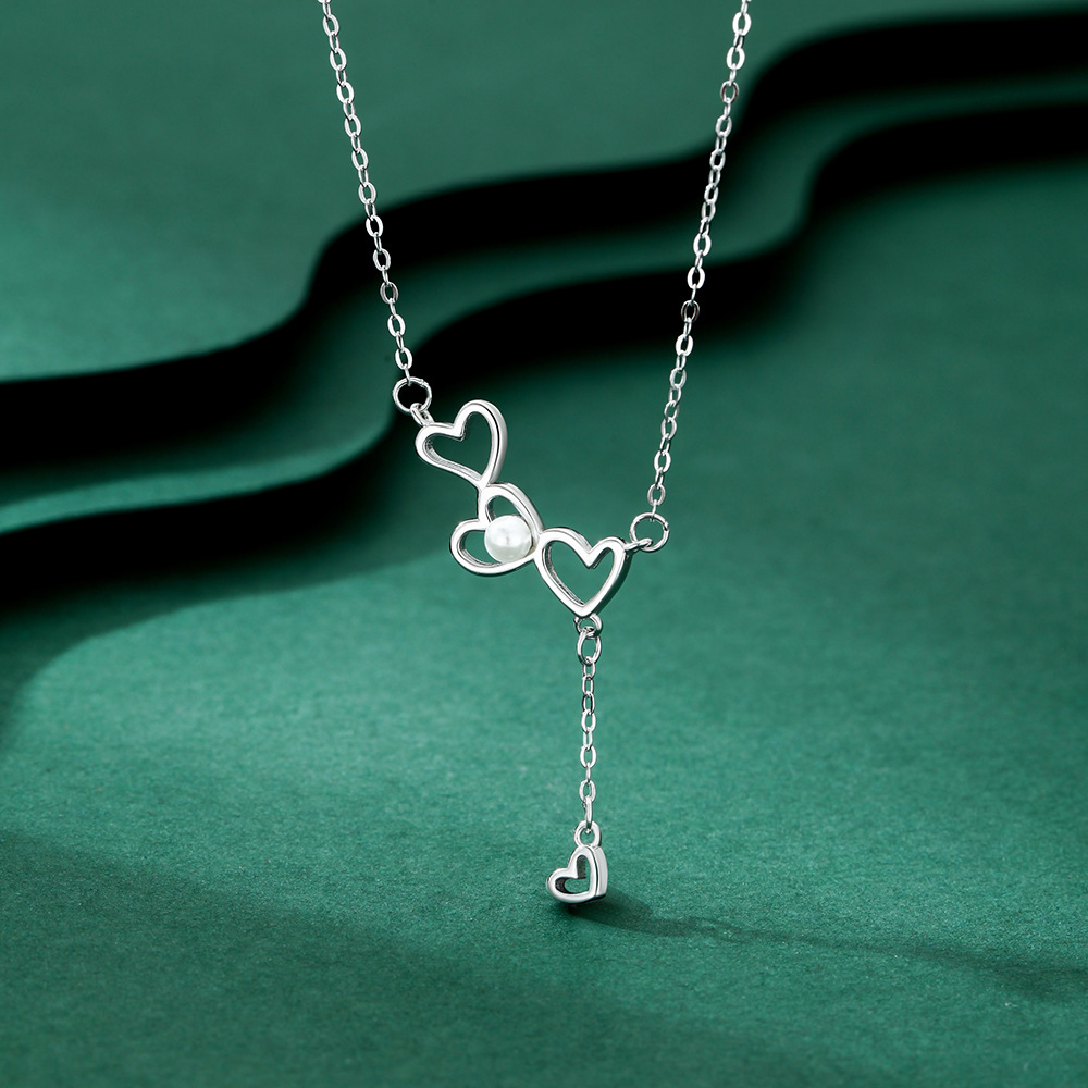 S999纯银不规则爱心流苏珍珠项链闪钻轻奢款锁骨链送女友生日礼物