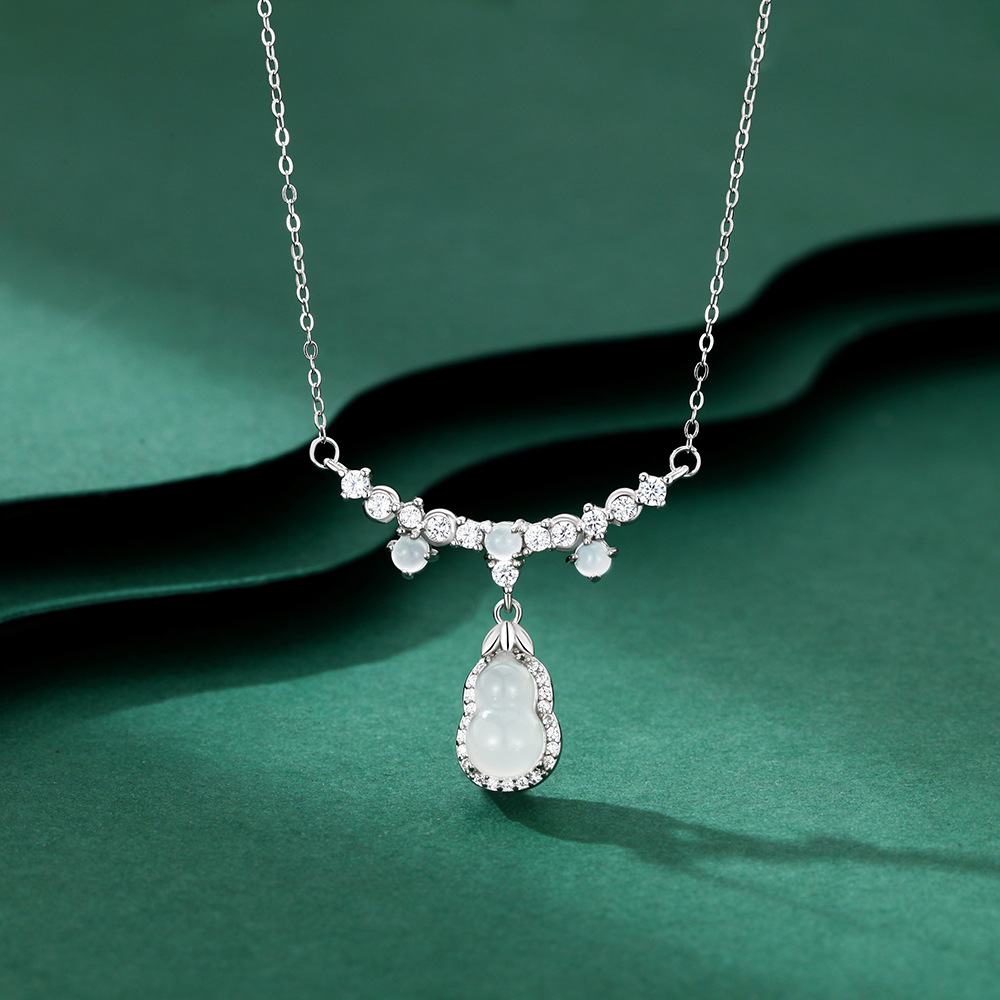 S999纯银福禄葫芦项链女2025新款本命年锁骨白玉髓吊坠情人节礼物