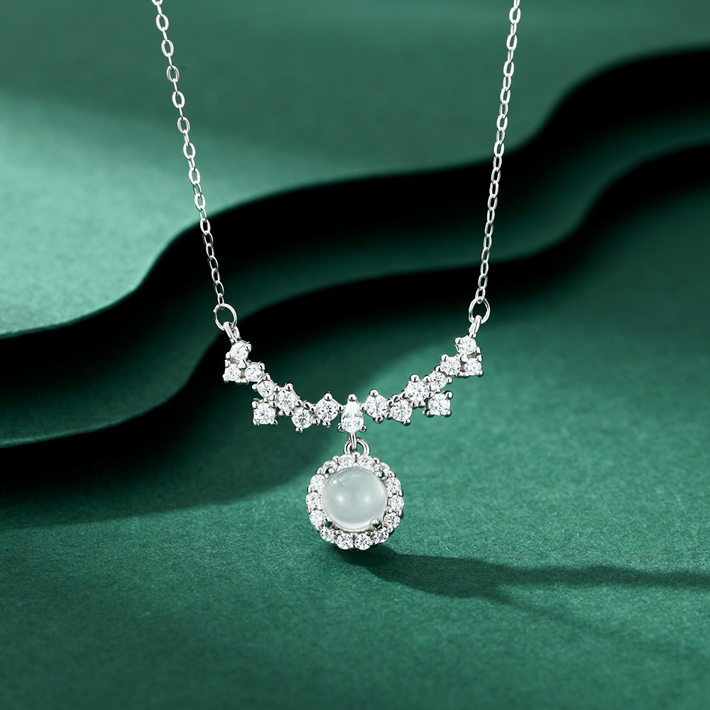 S999纯银新中式精美白玉髓项链女轻奢高级设计感颈链锁骨链送女友