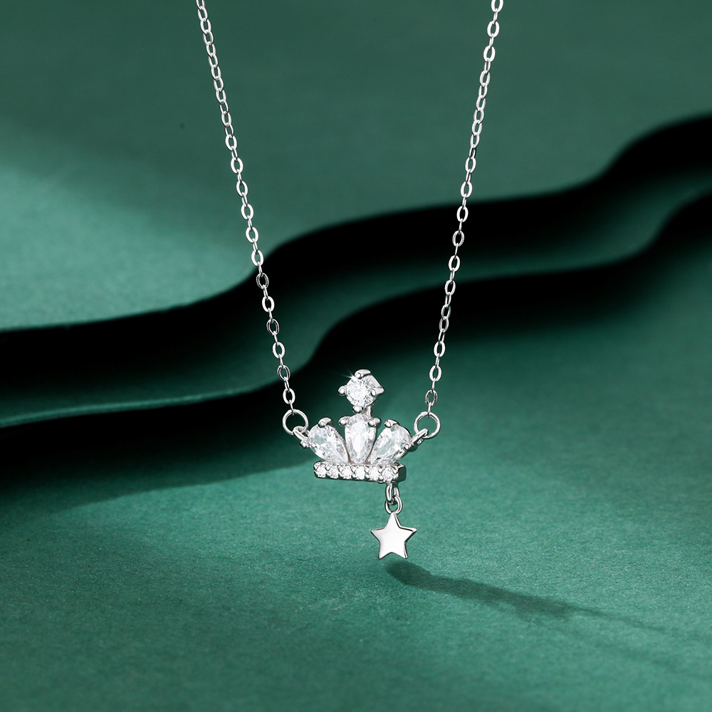 999纯银皇冠星星项链女韩版ins夏季时尚轻奢高级感锁骨链微镶锆石