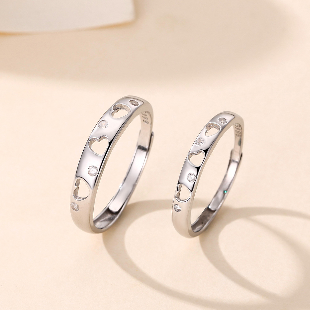 s999纯银心心相映戒指女甜美轻奢风时尚素圈个性高级感开口戒情侣