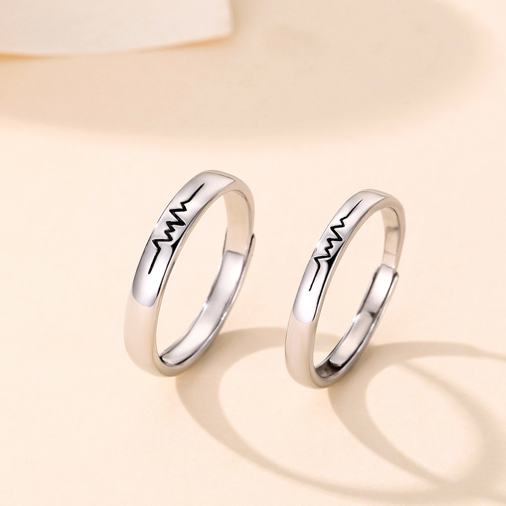 S999纯银心动频率情侣戒指男女一对戒简约高级感开口指环生日礼物