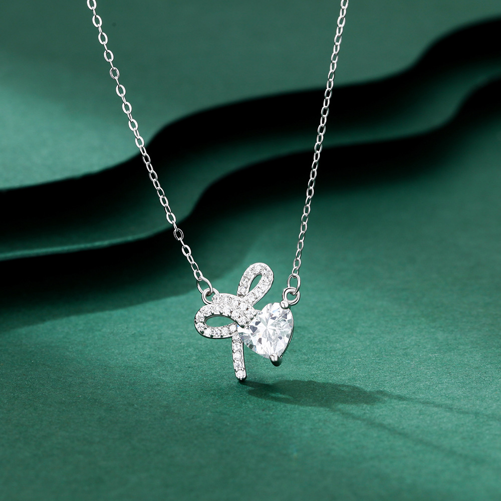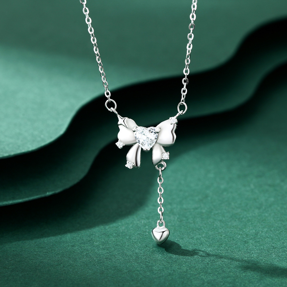 小红书爆款蝴蝶结S999足银项链女可爱甜美爱心锁骨链在逃公主吊坠