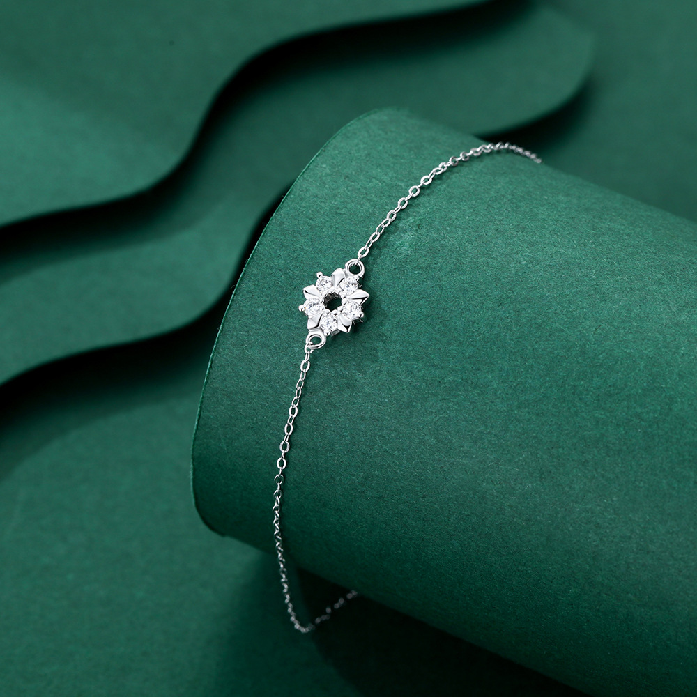 s999纯银雪花手链女轻奢风精致微镶满钻手饰送女友情人节七夕礼物