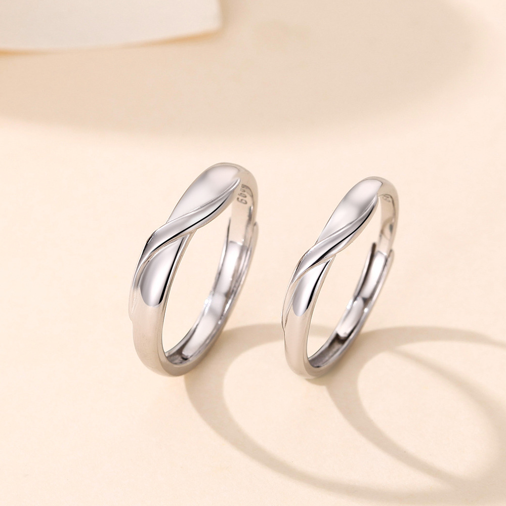 S999纯银莫比乌斯环情侣戒指男女一对戒韩版简约学生开口指环礼物