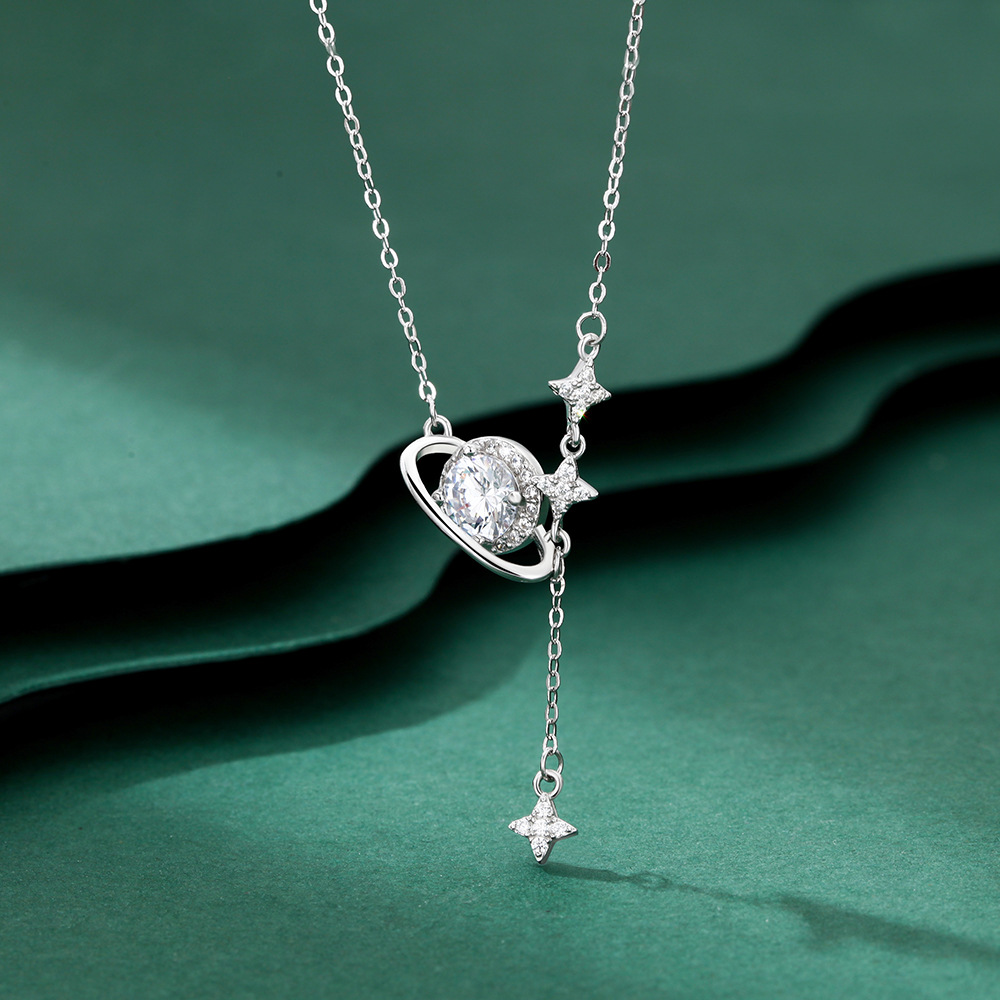 s999纯银星球轨迹闪钻项链女韩版ins小众设计高级复古轻奢锁骨链