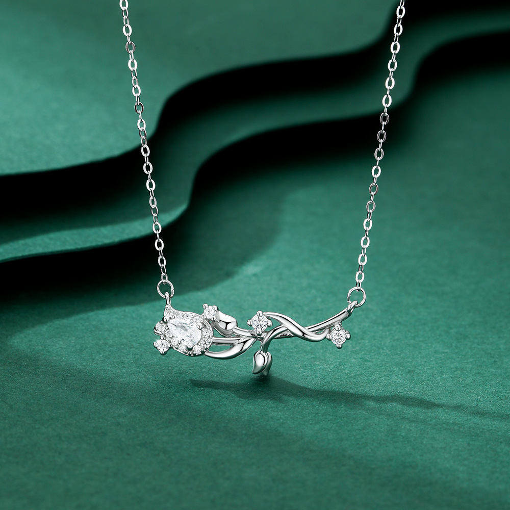 s999纯银郁金香项链女高级感百搭轻奢锆石锁骨链不掉色生日礼物