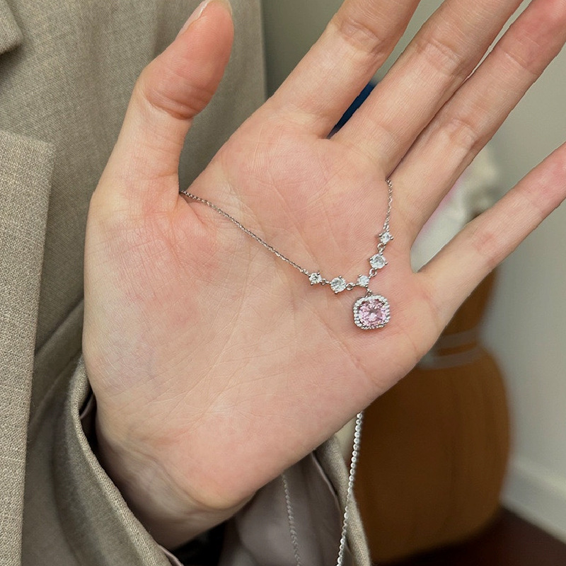 s999纯银方钻项链镶钻锆石女百搭高级感锁骨链时尚新潮网红配饰