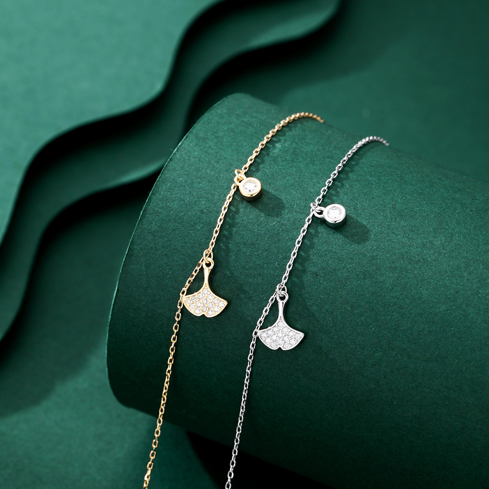 s999纯银银杏叶手链女韩版简约轻奢高级送女友情人节七夕生日礼物