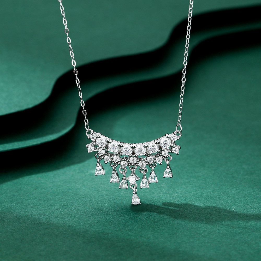 S999纯银精致瀑布流苏项链高级超闪锆石小众锁骨链送女友生日礼物