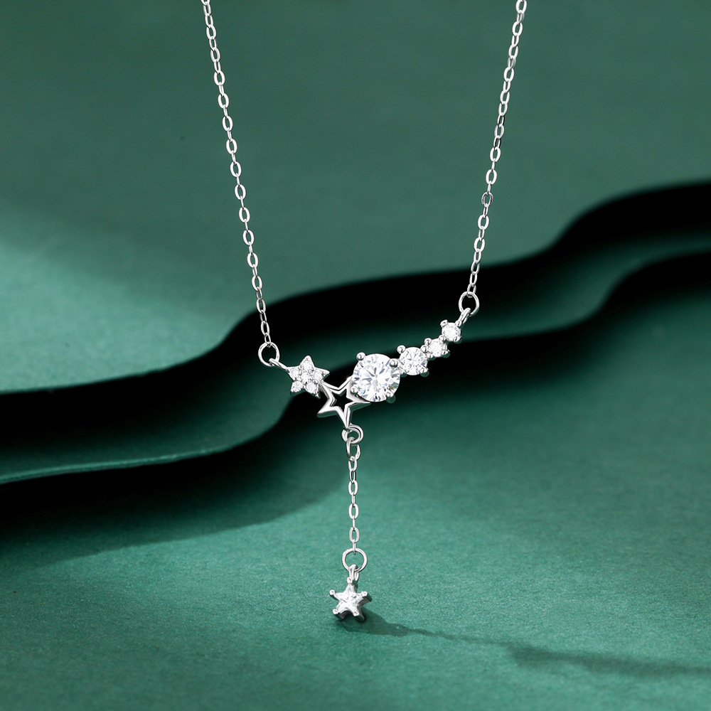 S999纯银甜美星星闪钻流苏项链小众设计轻奢群星璀璨镶钻锁骨链女