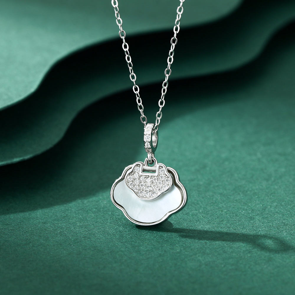 s999纯银白玉髓祥云如意平安锁项链女轻奢国风长命锁高级感锁骨链