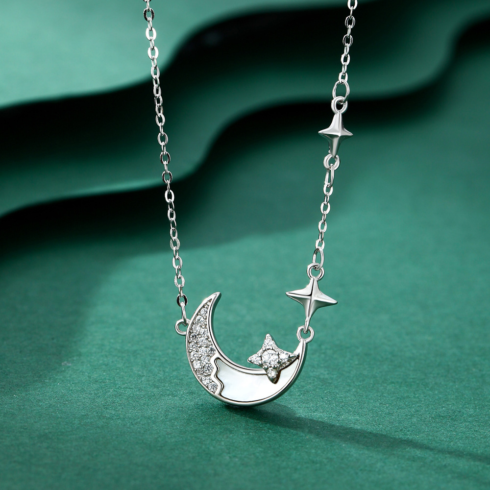 S999纯银星月项链女时尚设计感小众百搭不掉色锁骨链ins风高级感